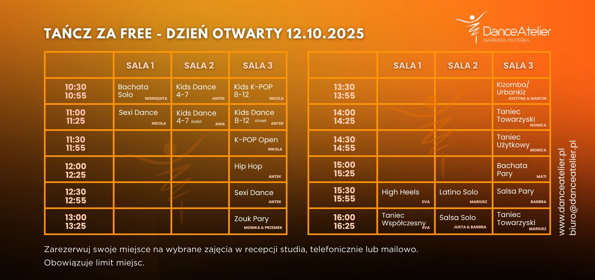 • mailowo: biuro@danceatelier.pl